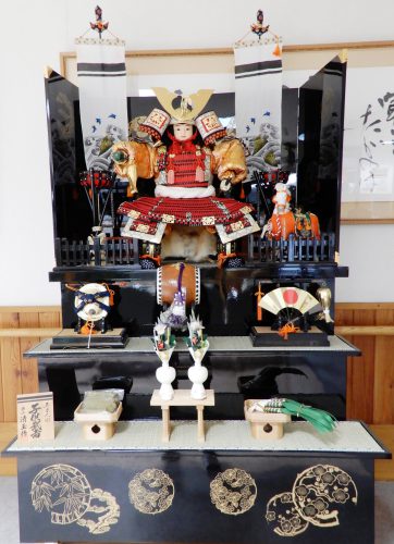 ↑メディトピア小諸・玄関正面の5月人形『子供武者』