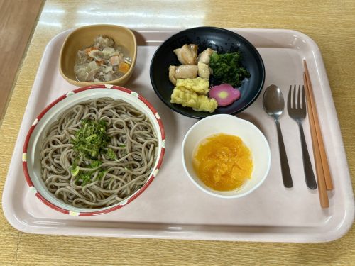 ☆年越しそば☆えび天梅かまぼこ☆大根と豚肉の利休煮☆みかん缶